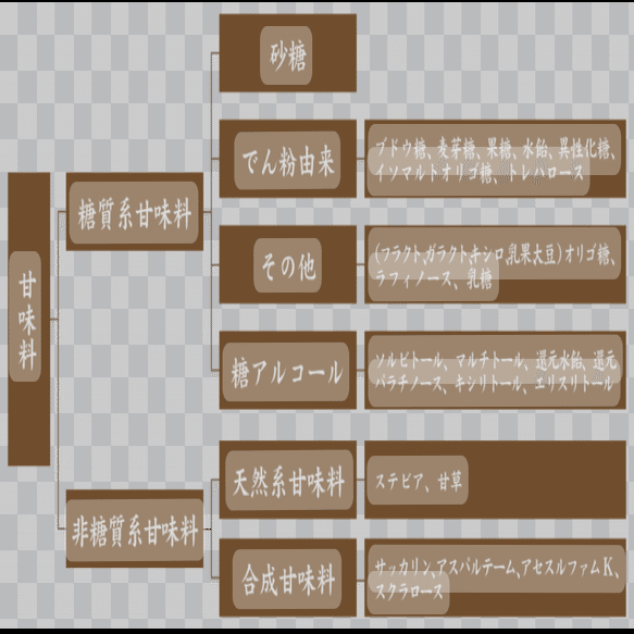 こちらが甘味料の区分けになります。